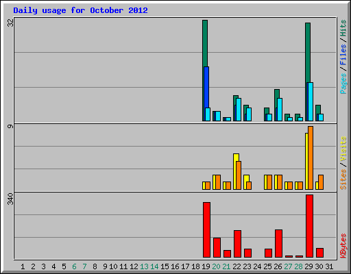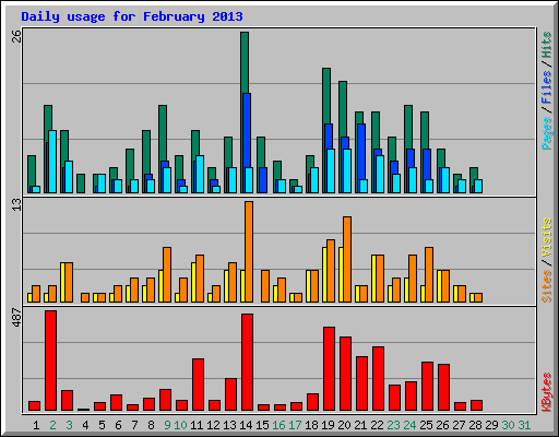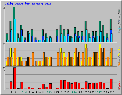 Day | Hits | Files | Pages | Visits | Sites | KBytes | ||||||