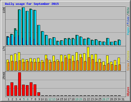 Day | Hits | Files | Pages | Visits | Sites | KBytes | ||||||